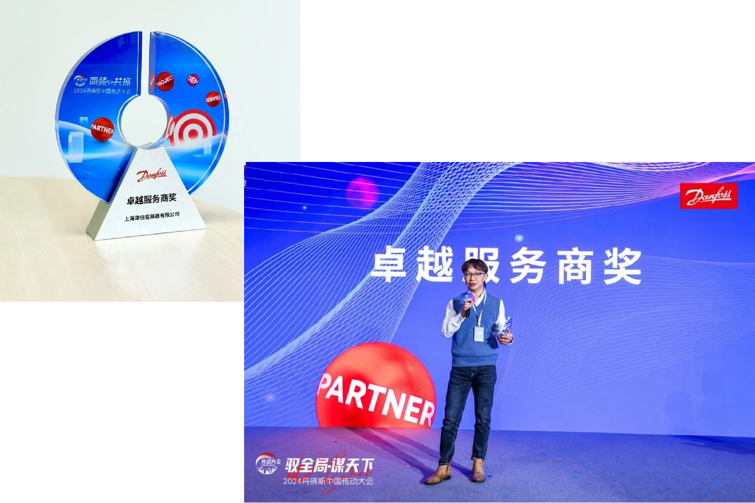 頒獎晚宴上,上海津信變頻器有限公司憑借優(yōu)質(zhì)的服務(wù)水平和業(yè)績,榮獲丹佛斯2024年度“卓越服務(wù)商獎”??偨?jīng)理徐祖頡先生表示:“一直以來,上海津信始終秉持 “走技術(shù)和服務(wù)的路線,以客戶為導(dǎo)向” 的理念,將技術(shù)和服務(wù)視為公司發(fā)展的核心驅(qū)動力。本次獲獎不僅是對我們工作的高度認(rèn)可,更是對我們持續(xù)深耕技術(shù)服務(wù)領(lǐng)域的激勵。未來,我們期望與丹佛斯進(jìn)一步深化合作,不斷提升服務(wù)水平,共同開拓更廣闊的市場,為客戶創(chuàng)造更大的價值。”